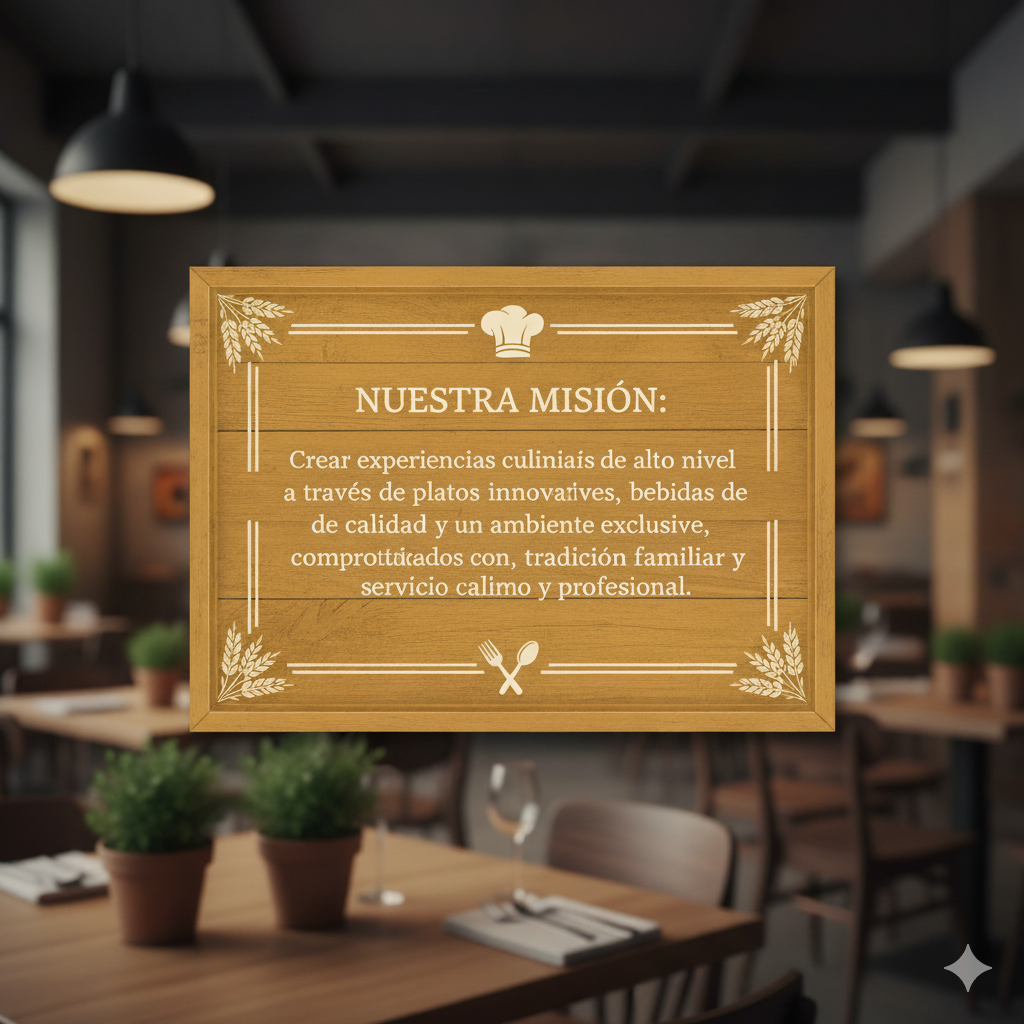 Crear experiencias culinarias de alto nivel a través de platos innovadores, bebidas de calidad y un ambiente exclusivo, comprometidos con la excelencia, la tradición familiar y el servicio cálido y profesional.